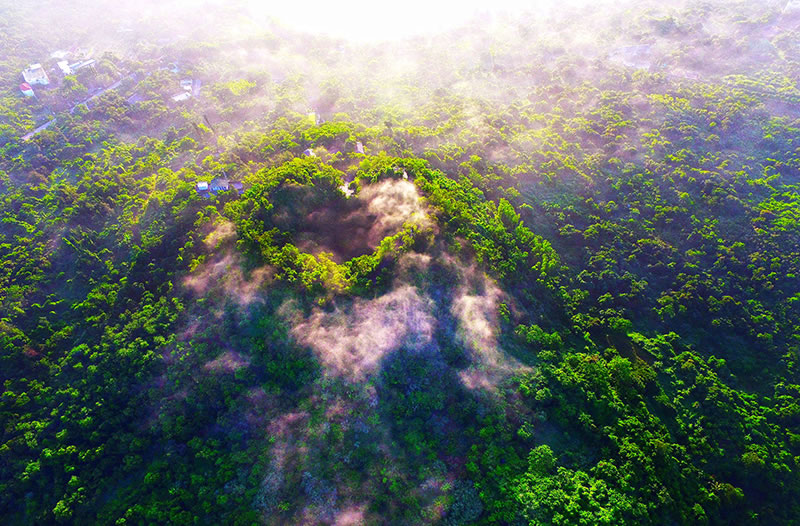 地質(zhì)遺跡主體為40座火山構(gòu)成的第四紀(jì)火山群。園區(qū)在火山錐、火山口及玄武巖臺(tái)地上發(fā)育熱帶雨林為代表生態(tài)群落,植物有1200多種,果園與火山景觀融為一體,為熱帶城市火山生態(tài)的杰出代表。總面積108平方公里。主要景點(diǎn)有馬鞍嶺、雙池嶺、仙人洞、羅京盤(pán)等。