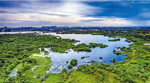 ?谖逶春訃(guó)家濕地公園,南起永莊水庫(kù),北至五源河河口海域,主要包括永莊水庫(kù)、五源河及河口海域3個(gè)濕地單元,規(guī)劃面積1300公頃(1.95萬(wàn)畝),其中濕地面積958公頃(1.44萬(wàn)畝),有4個(gè)濕地類(lèi)及10個(gè)濕地型,濕地率為73.69%。公園內(nèi)共有野生維管束植物96科318屬427種,其中水蕨為國(guó)家二級(jí)保護(hù)植物。共有野生脊椎動(dòng)物25目66科154種,其中國(guó)家Ⅱ級(jí)重點(diǎn)保護(hù)野生動(dòng)物多達(dá)11種。五源河上游的永莊水庫(kù)及周邊大面積的火山熔巖濕地和灌叢沼澤區(qū),是海口市區(qū)內(nèi)自然生態(tài)保存較為完好的區(qū)域,擁有城市內(nèi)稀缺的動(dòng)物棲息地和植被生態(tài)環(huán)境。