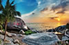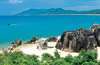 天涯海角位于天涯區(qū)的馬嶺山腳下,距三亞市區(qū)約26千米。其前海后山,風(fēng)景獨特。步入游覽區(qū),沙灘上那一對拔地而起的高10多米,長60多米的青灰色巨石赫然入目。兩石分別刻有“天涯”和“海角”字樣,意為天之邊緣,海之盡頭!疤煅暮=恰本褪怯纱说妹。