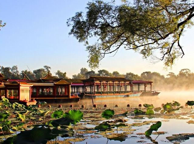 清康熙二十年(1681年),清政府為加強(qiáng)對蒙古地方的管理,鞏固北部邊防,在距北京350多公里的蒙古草原建立了木蘭圍場。每年秋季,皇帝帶領(lǐng)王公大臣、八旗軍隊、乃至后宮妃嬪、皇族子孫等數(shù)萬人前往木蘭圍場行圍狩獵,以達(dá)到訓(xùn)練軍隊、固邊守防之目的。為了解決皇帝沿途的吃、住,在北京至木蘭圍場之間,相繼修建21座行宮,熱河行宮——避暑山莊就是其中之一。避暑山莊及周圍寺廟自康熙四十二年(1703年)動工興建,至乾隆五十七年(公元1792年)最后一項工程竣工,經(jīng)歷了康熙、雍正、乾隆三代帝王,歷時89年。在英法聯(lián)軍攻打北京時,咸豐皇帝就帶著一批大臣逃到了這里。