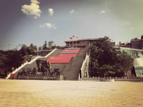 位于前南峪村東口。1986年奠基并建成。碑身高21米,碑體四面均白色花崗巖貼面。正面由原中共中央總書記胡耀邦同志題寫碑名?勾蟾毙iL(zhǎng)何長(zhǎng)工同志撰寫碑文,碑四周為漢白玉欄桿。