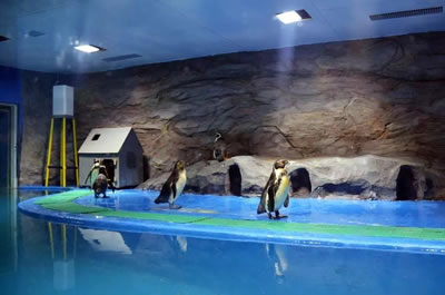 秦皇島新澳海底世界總建筑面積約2萬平方米,總儲水量約650萬千克。景區(qū)主要由水族館和海豚表演館兩部分組成,其中,水族館主要包括小池區(qū)、企鵝館、海豹館、觸摸池、海底隧道、表演區(qū)、科普展廳、科普教室以及海洋精品店等部分組成。