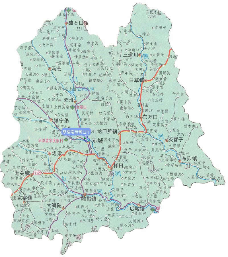 鎮(zhèn):赤城鎮(zhèn)、田家窯鎮(zhèn)、龍關鎮(zhèn)、雕鄂鎮(zhèn)、獨石口鎮(zhèn)、白草鎮(zhèn)、龍門所鎮(zhèn)、后城鎮(zhèn)、東卯鎮(zhèn)