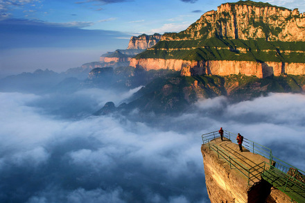云峰畫廊是一條畫廊式的風(fēng)光帶,位于老爺頂?shù)陌肷窖,由清峰關(guān)起,環(huán)周8千米,終點(diǎn)又回到清峰關(guān)。它依附老爺頂,連接豫晉關(guān),遙望十字嶺,擷取太行山的精華,依山順勢建造了7個(gè)位置極佳的觀景臺(tái),依次為聽禪臺(tái)、試膽臺(tái)、如畫臺(tái)、戲龍臺(tái)、丹鳳臺(tái)和歸真臺(tái)。