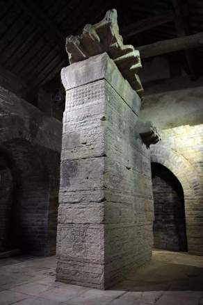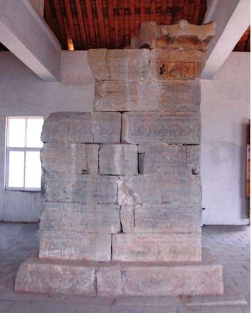 觀星臺(tái)南側(cè)的周公測(cè)景臺(tái)是古代祖先測(cè)量日影、驗(yàn)證時(shí)令季節(jié)的儀器。分臺(tái)座和臺(tái)柱兩部分,臺(tái)座叫圭,臺(tái)柱叫表。夏至日這一天的正午,在測(cè)景臺(tái)的周?chē)床坏奖淼挠白,所以,稱(chēng)此臺(tái)為無(wú)影臺(tái)。又因?yàn)闊o(wú)影,我們的祖先就認(rèn)為這里就是地中。