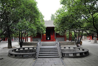 古代儒家倡導(dǎo)有道統(tǒng)就有治統(tǒng),因?yàn)椤爸谓y(tǒng)得道統(tǒng)而盛,道統(tǒng)賴治統(tǒng)而光!奔漓氲澜y(tǒng)三圣人,是嵩陽(yáng)書院的傳統(tǒng),在中國(guó)古代書院中,唯有嵩陽(yáng)書院保存此種祭祀形式。柱聯(lián)為清末政治家林則徐所作: “海納百川,有容乃大;壁立千仞,無(wú)欲則剛”。