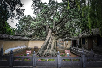 二程手植槐,樹(shù)高19.5米,圍粗4米。雖然樹(shù)干嶙峋,中空外實(shí),槐冠卻叢撥陰濃,新枝簇簇,樹(shù)姿優(yōu)美,老而不衰。相傳為北宋理學(xué)名家程顥到嵩陽(yáng)書院講學(xué)時(shí)親手所栽。