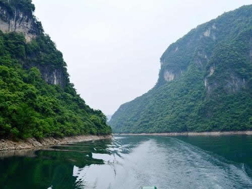 從隔河巖碼頭上船,便開始了浪漫的清江之旅。船從大壩右側(cè)駛?cè)胍坏缻{谷,這是清江畫廊第一景——倒影峽。峽長(zhǎng)5公里,水靜谷幽,山峰陡峭,處處皆畫。倒影峽水平如鏡,魚游枝頭鳥宿水的畫面,隨處可見。兩岸的巖石形成獨(dú)特的天然石林景觀,主峰有文峰倒影,駱駝飲水,孔雀開屏。巫靈大佛等自然景觀。倒影峽因山得名,這座山叫作文峰山,陽(yáng)光燦爛的時(shí)候,它雄勁的身姿便倒映在清江之中,故此處稱為文峰倒影。隔河巖大壩蓄水后,便被稱為倒影峽了。