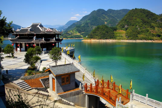 從隔河巖大壩游船碼頭,乘船可游覽百島湖。百島湖位于隔河巖大壩壩區(qū)的上游,最初,這里有許多山峰聳立于清江兩岸,由于隔河巖大壩的修建,清江水位上升幾十米,使山峰成為湖中島,故名百島湖。乘船可依次游覽倒影峽、白玉湖、平湖洛、柏園島、武落鐘離山、天柱山、巴人洞景區(qū)。