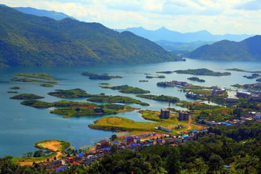 它遠離城市,湖內(nèi)碧波萬傾,水中仙島競秀,兩岸青山峽嶼,山中溶洞幽深,是不可多得的世外桃源。