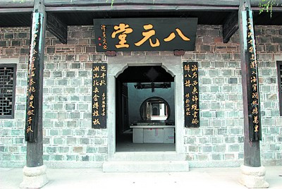 八元堂,又名寧鄉(xiāng)會館,座落在古鎮(zhèn)保健街上,建成于清咸豐十一年(1861年)。在晚清時期,靖港是溈水河入湘江的天然良港和商埠,昔日寧鄉(xiāng)的谷米、煤炭、油鹽等都是在此集散,來靖港從業(yè)的寧鄉(xiāng)人接近四千人,“西接湖垸,金稻銀棉憑集散;東依湘溈,風帆云影任驅(qū)馳!北闶窃娙藢Φ锰飒毢竦木父酃沛(zhèn)的頌贊,它在當時是一個管理寧鄉(xiāng)船舶和谷米銷售的據(jù)點,也是為來靖港的寧鄉(xiāng)老鄉(xiāng)下榻休息和聯(lián)絡(luò)鄉(xiāng)情等的服務(wù)機構(gòu)。