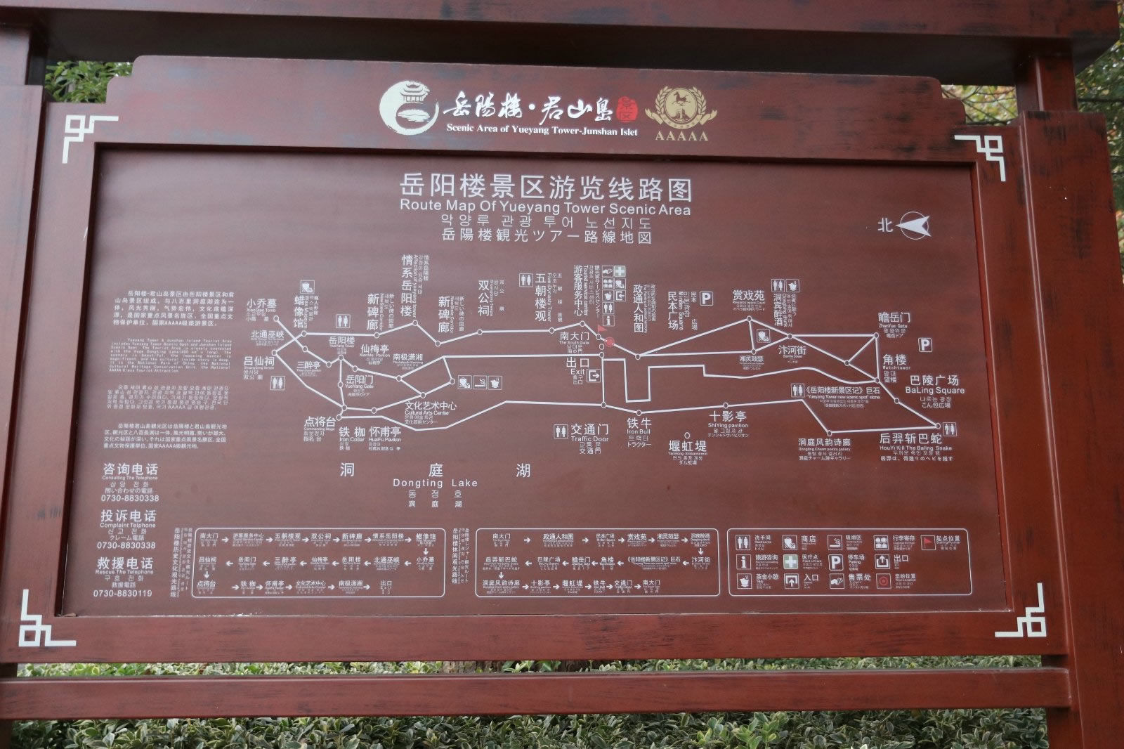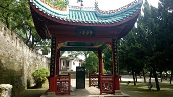 懷甫亭位于岳陽(yáng)樓下臨湖平臺(tái),占地40平方米,高7米,四周環(huán)以欄桿,上部為純木結(jié)構(gòu),亭中豎有石碑一方,正面刻著杜甫的畫像和《登岳陽(yáng)樓》詩(shī),背面刻有其生平事跡,北面檐下懸掛有樟木匾額,上書"懷甫亭"三個(gè)字,是岳陽(yáng)人民紀(jì)念詩(shī)圣杜甫的地方。