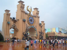 “迷獸天途”:這座龐大的平頂建筑也有石砌的不規(guī)則外墻,其內部設計則緊扣樂園劍文化主題,充滿游戲魔幻色彩。集現場實景、立體電影、現場特技、動感平臺等先進技術于一體,綜合了巨幕、環(huán)幕4D電影、多自由度動感游覽車、現場特技等多項高科技游樂技術。