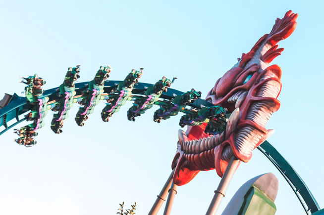 美好時(shí)光版的過山車非時(shí)光飛車莫屬,翻轉(zhuǎn)俯沖夠勁卻能穩(wěn)穩(wěn)的飛馳,墜落感在耳邊呼嘯,刺激感被歡樂的氣氛團(tuán)團(tuán)包圍。