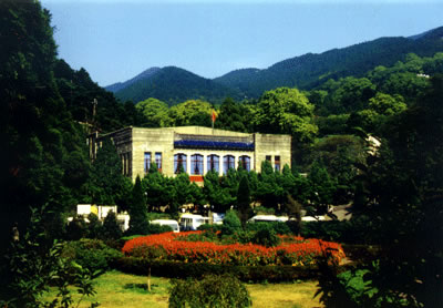 廬山會議舊址位于牯嶺東谷擲筆峰麓。原是蔣介石在廬山創(chuàng)辦軍官訓練團的三大建筑之一,于1937年落成,名廬山大禮堂。解放后改名“人民劇院”。1959年中國共產(chǎn)黨八屆八中全會,1961年中央工作會議和1970年九屆二中全會均在此召開。毛澤東同志主持了這三次重要會議,F(xiàn)在,這里已辟為廬山會議紀念館。里面保存著當年許多珍貴的實物、照片、材料和根據(jù)紀錄片制作的錄相片,供游人觀看。 右側(cè)不遠處的“廬山大廈”為外觀4層、內(nèi)有6層的鋼筋水泥建筑,原為國民黨軍官訓練團的中下級軍官住所,正面額上原有蔣介石題寫的“廬山傳習學舍”四個大字。位于會址和大廈中間的一座宮殿式建筑即為1935年落成的廬山圖書館。