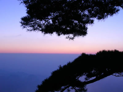 俗稱廣平尖,異名孔明尖。位于三清山的中心,與玉虛、玉華兩峰鼎峙屹立,海拔1816.9米,是清山第一高峰!段簳尷现尽份d:“道家之原,出于老子,其自言也,先天地生,以資萬類。上處玉京,為神王之宗;下在紫微,為飛仙之主!比迳较档澜堂,其最高峰故名玉京峰。峰頂突出有兩大巖石。東側(cè)巖石峭壁上鐫有“玉京峰”三個(gè)楷書大字,頂端平坦約會(huì)0平方米,中間有一方石,刻有棋盤,傳說是太上老君與眾仙下棋處,人稱“棋盤石”。其東南側(cè)有中國人民解放軍總參測繪局的鑄鐵覘標(biāo)一座,為玉京峰的標(biāo)高點(diǎn)。西側(cè)巖石地勢空曠,上有兩塊相連的巨石,鋒如刀刃,很難立足,巖壁上鐫有“升天石”三字,比東側(cè)巖石要高3.08米,“此處離天十八丈”,是三清山的極頂。玉京峰氣勢雄偉,高聳云天,東、南、西三面巖石如峭,崢嶸險(xiǎn)峻。峰下西北側(cè)是飛仙谷,深邃莫測。北面有登極嶺,石磴蜿蜒曲折直達(dá)峰頂。身臨其巔如在九霄,腳下絕壁千仞,危崖欲墜。周圍群峰交織,幽壑縱橫,俯視令人頭暈?zāi)垦。站在峰頂遠(yuǎn)眺,極目煙巒無際處,天上人間一望中!爸堤炖势蚯澹瑒t匡廬,鄱水隱然指顧間”。玉京峰南面,蓬萊三峰隔壑而列,陡峭秀麗,蔥蘢嬌翠,奇美動(dòng)人。玉京峰頂看日出是一大奇觀,旭日東升如錦上金盤,美不勝收。遇有云霧又是一番景色,時(shí)而蒼茫如海,時(shí)而縹緲如紗,游人邁步云中走,伸手可以把云抓,儼然人間仙境。
