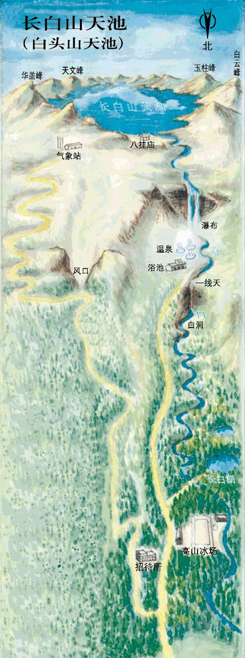 長白山天池是中國境內(nèi)保存最為完整的新生代多成因復合火山,天池在宋朝以后多有噴發(fā),清光緒三十四年(1908年)起,劉建封登上白云山,為天池十六峰命名,探明鴨綠、松花、圖們?nèi)戳鳌L斐刂車鹕娇诒诙盖,并形成十幾座環(huán)狀山山峰,海拔均在2500米以上,長白山天池也是松花江、鴨綠江以及圖們江的發(fā)源地,素有“三江之源”的雅稱。