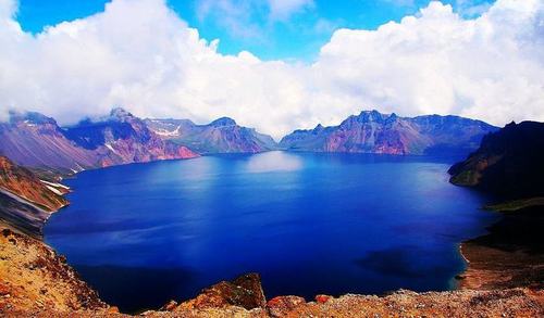 長白山天池,又稱白頭山天池,坐落在吉林省東南部長白山自然保護區(qū)內(nèi),是中國和朝鮮的界湖,雙方各擁有一部分水域。天池南北長約4400米,東西寬約3370米,其池水的海拔高度為2189.1米,最深處為373米,平均204米,水面面積9.82平方千米,周長13.1千米。據(jù)《長白山江岡志略》記載:“天池在長白山巔的中心點,群峰環(huán)抱,離地高約20余里,故名為天池。”