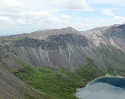 錦屏鋒海拔2590米,位于天池西側(cè)。在芝盤峰北200米處,東起龍門峰,西經(jīng)觀日峰、芝盤峰,南至白云峰的大馬蹄形內(nèi)壁,俗稱“大簸箕”的正中。