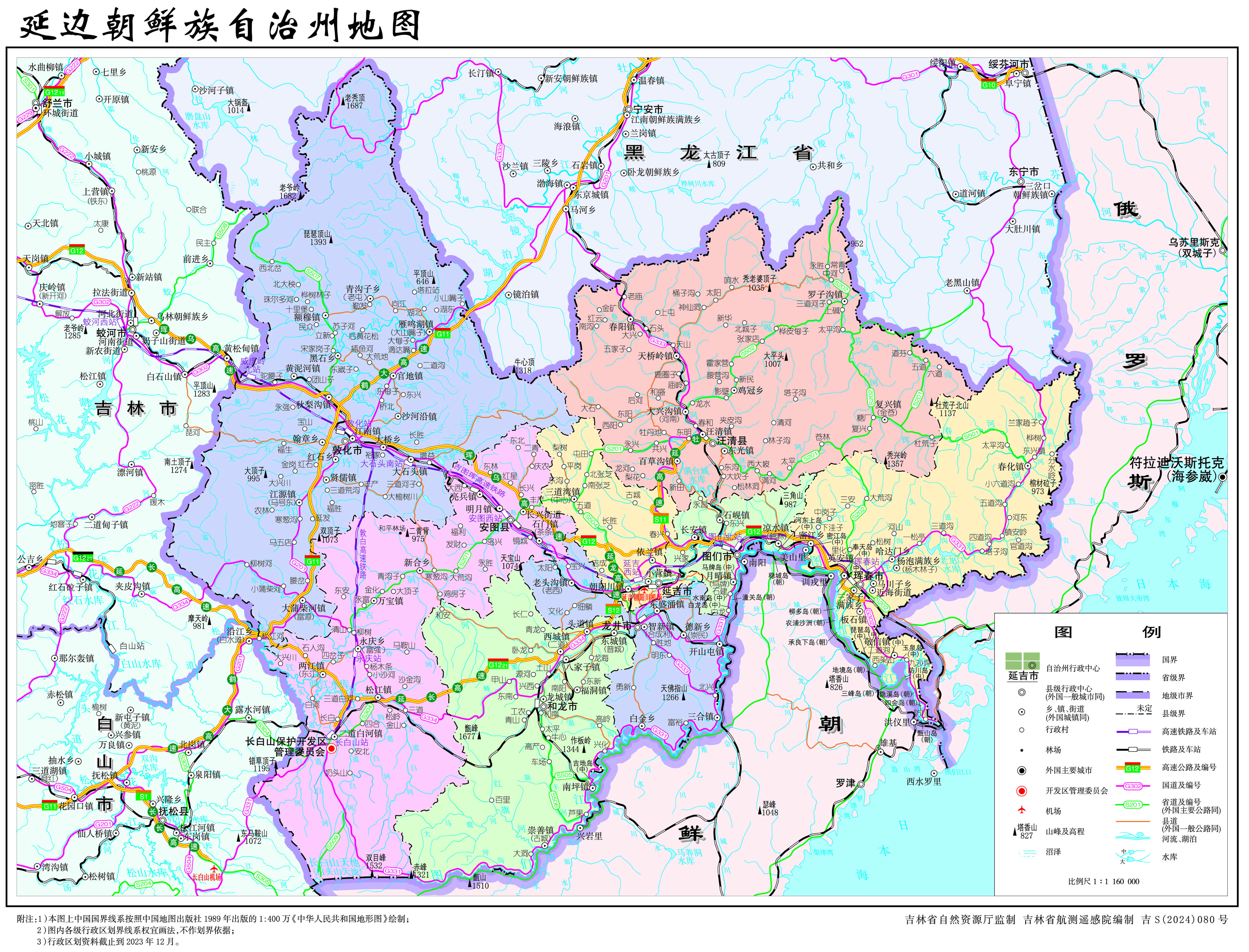 延邊朝鮮族自治州轄6個(gè)縣級市、2個(gè)縣: