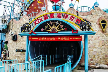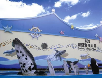 以展示海洋動(dòng)物為主,常年有海豚、白鯨、鯊魚表演。1995年6月對(duì)游人開放,是海底通道式水族館,擁有當(dāng)時(shí)亞洲最長的118米海底通道,開創(chuàng)了中國第三代水族館建設(shè)的先河。2005年7月,圣亞海洋世界改版,把海洋館與主題樂園的模式有機(jī)地融合在一起,讓游客如同一出海洋情景劇中的角色,完成“從陸地進(jìn)入海底,再從海底回到海上”的奇幻旅程,圣亞海洋世界也因此成為一座情景式海洋主題樂園。