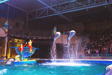 奇幻的360度多維水秀場,一段白鯨、海豚的動(dòng)情表演,一段王子、公主的浪漫愛情,與月光天使、海盜聯(lián)袂演繹真人版的“人魚童話”。多種藝術(shù)形式、多重情感體驗(yàn),國際化表演陣容,帶給游客夢幻動(dòng)人的童話故事。