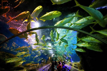 走進(jìn)中國第一座海底通道,體驗(yàn)第一次置身海底的感動(dòng)。漫步在波光粼粼的幽藍(lán)海底,300余種、近萬尾海洋生靈觸手可及;遭遇大鯊魚遮天蔽日,欣賞炫彩巖礁光彩奪目,傾聽斷壁殘?jiān)V說昔日繁華;握緊她/他的手,一起走過這118米的奇幻之旅,共同游歷傳說中的亞特蘭蒂斯。