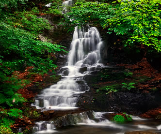 到秋季,葉子就會變成紅色,鮮艷欲滴,看上去就像一個天然盆景。圣泉,大家請看,涓涓細流順石而下,無論多旱的天它都細水長流,當?shù)仄摺耸畾q的老人都知道在以前的大旱年代,圣泉曾經(jīng)救過很多人的命,因此當?shù)乩习傩瞻阉Q作救命水和觀音水。如果用瓶子接一下,就會看到瓶壁上結(jié)了一層霜,像剛從冰箱里拿出來的一樣,人們都說;農(nóng)夫山泉有點甜,其實關(guān)門山山泉更香甜。看過了圣泉的纏綿,再來看一看晶簾瀑布的壯觀。晶簾瀑布就像一個水晶的簾子倒掛,關(guān)于它還有一個動人的傳說。瀑布兩側(cè)的山如刀削一樣,原來這兩座山是連在一起的,這邊也沒有瀑布的水。相傳,由于這兩座山相連在一起,山這面的百姓不得不到山那面的潭中取水,潭中有一條蛟龍,看到百姓擔水非常辛苦,于是有一天他竭盡全力指向大山,撞開了一條通道,河水就流了出來,人們的飲用水得到了解決,但是蛟龍卻因精疲力竭而死,人們?yōu)榱思o念這條蛟龍,便把大墻縫改為龍門峽,把這條瀑布稱為龍門峽的晶簾瀑布,下面的潭水稱為龍涎潭。