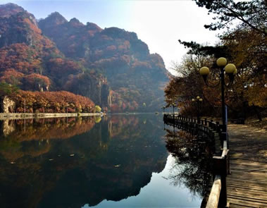 這里的主要景點有碧波蕩漾的五彩湖、陡峭秀麗的寶塔峰,栩栩如生的雄獅鎮(zhèn)岳等等。五彩湖,它是98年修建的一個人工湖,平均水深3.6米,最深處可達7.5米,為什么叫五彩湖呢?每到秋季,黃的柞樹、綠的青松、紅的楓樹,它們的倒影映襯在水里邊,呈現(xiàn)出五彩繽紛的顏色,故比得名五彩湖。