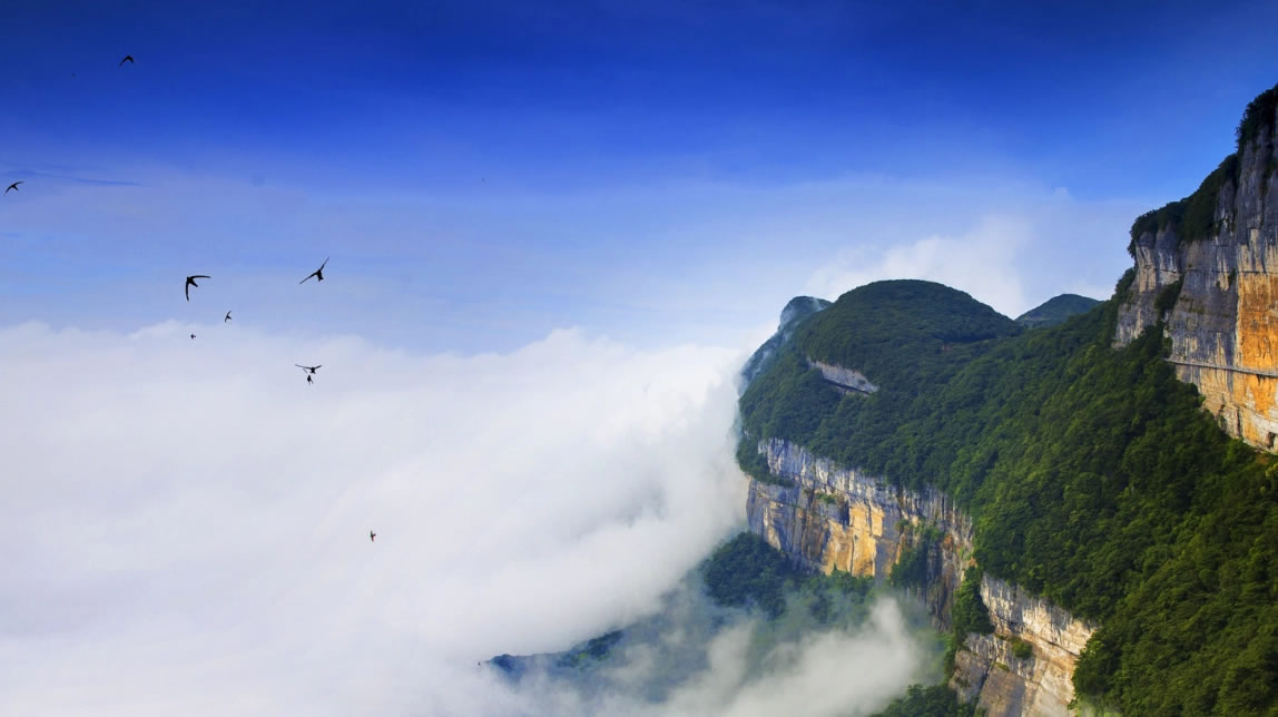 - 修建在懸崖峭壁上的棧道,行走其上,可俯瞰整個(gè)金佛山景區(qū),感受驚險(xiǎn)與刺激。