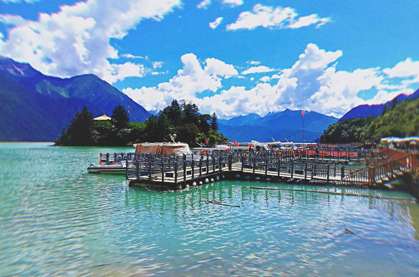 - 特色:巴松措湖中央的小島,島上有一座建于唐代的錯宗工巴寺。