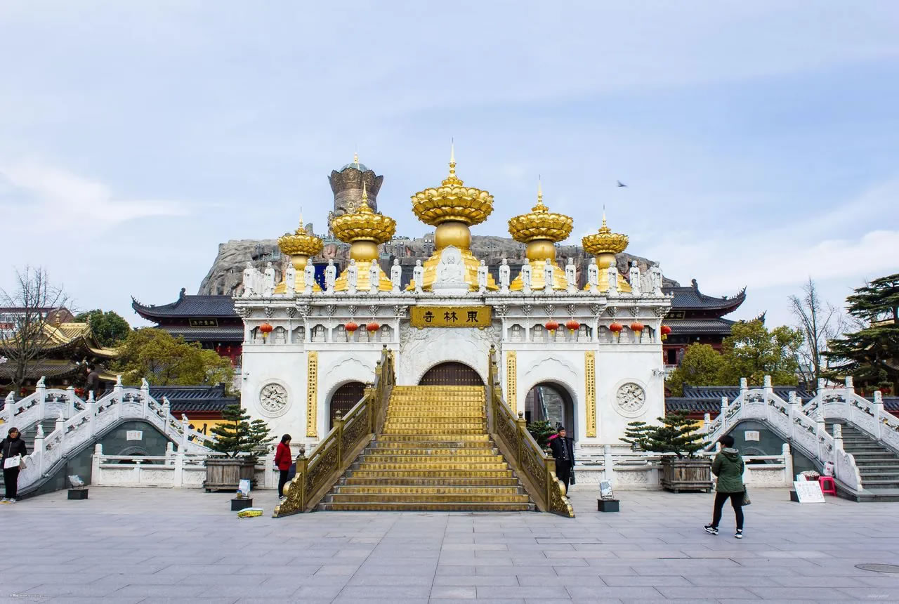 東林寺,位于上海市金山區(qū)朱涇鎮(zhèn)。其原名觀(guān)音堂,元至大元年(1308年),由僧侶妙因創(chuàng)建。元皇慶二年(1313年)改為東林禪寺。東林寺占地24.07畝,為浦南地區(qū)單體建筑面積最大的元、明、清建筑群,建筑風(fēng)格獨(dú)特,寺廟主體建筑依著一座高大的仿假山建筑而建,形成山寺合一。寺廟的新建部分融合了現(xiàn)代設(shè)計(jì)元素,在保留傳統(tǒng)廟宇氣息的同時(shí),展現(xiàn)出新穎獨(dú)特的景觀(guān)。尤其是寺廟中金碧輝煌的建筑和雕塑,展示出中國(guó)傳統(tǒng)工藝的精湛與華麗。分圓通寶殿、大雄寶殿、觀(guān)音閣、善財(cái)?shù)睢⑶Х痖T(mén)、鐘樓、鼓樓、金愿橋、五佛冠、金蓮池(景泰藍(lán)善財(cái)童子)等景點(diǎn)。