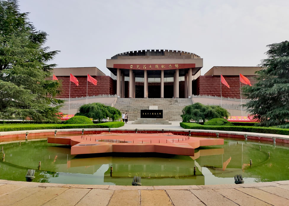 棗臺(tái)兒莊大戰(zhàn)紀(jì)念館,位于山東省棗莊市臺(tái)兒莊區(qū)城區(qū)西南郊,是為了紀(jì)念抗日戰(zhàn)爭初期著名的臺(tái)兒莊戰(zhàn)役而修建,于1992年由臺(tái)兒莊區(qū)人民政府籌資建成,1993年4月8日正式對(duì)外開放,后經(jīng)擴(kuò)建,占地面積達(dá)96畝,建筑面積1.2萬平方米。臺(tái)兒莊大戰(zhàn)紀(jì)念館由紀(jì)念碑、陳列館、影視館、全景畫館、戰(zhàn)地記者館、無名英雄墓、國防教育園等部分組成,并設(shè)有臨時(shí)展廳、多功能報(bào)告廳和紅色圖書室。展出文物、圖片和史料2000余件,通過歷史文物、歷史圖片、文獻(xiàn)資料與各類輔助陳列手段的有機(jī)結(jié)合,全景再現(xiàn)臺(tái)兒莊大戰(zhàn)中愛國將士報(bào)效祖國的壯舉。