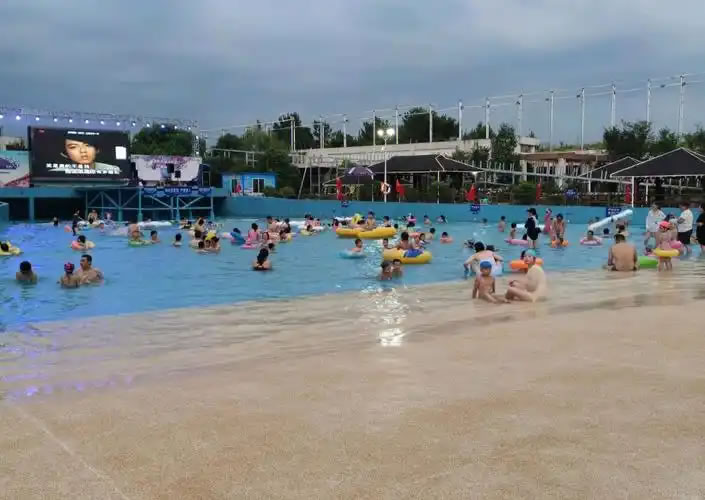 - 特色:大型室外人工沖浪池,浪高2米左右,仿佛真的在海邊沖浪,能同時容納3000多人。配有兒童戲水區(qū),很適合親子游玩,還有休息區(qū)、表演區(qū)、餐飲區(qū)和人工沙灘。玩累了可以隨時休息,補(bǔ)充能量。