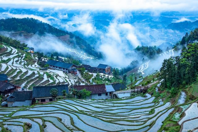 • 特色:梯田形似九條巨龍蜿蜒,日出日落時(shí)分云霧繚繞,宛如仙境。