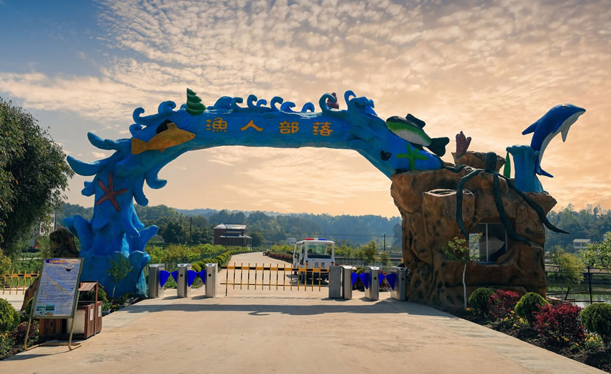 漁人部落風(fēng)情園旅游景區(qū)位于達(dá)州市大竹縣廟壩鎮(zhèn)五桂村,地處大竹、達(dá)州半小時經(jīng)濟圈和重慶1小時經(jīng)濟圈內(nèi),占地面積約1.5平方公里。景區(qū)集生態(tài)現(xiàn)光、垂釣賽事、科普研學(xué)、親子娛樂、戶外運動、休閑度假于一體,是一處流水蜿蜒環(huán)繞、飛瀑凌空指重、亭臺依山而傍、麗景萬紫千紅、美景融合人文、山水變成畫卷的景區(qū),被廣大游客譽為“川東明珠”“酷玩樂園”“垂釣勝地”。漁人部落以休閑觀光為中心,以魚文化、養(yǎng)生娛樂為主題,建成以觀光農(nóng)業(yè)為基礎(chǔ)、以養(yǎng)老養(yǎng)生為目標(biāo)的魚文化主題突出的鄉(xiāng)村旅游亮點。已建成云中漫步、水上樂園、兒童天地、海洋沙池、彩虹王國、星空滑道、水上游船、白巖棧道、樹王亭、鳳凰觀景臺、百泉山瀑布及演繹中心舞臺等十五大游樂區(qū)域的主題親子樂園。