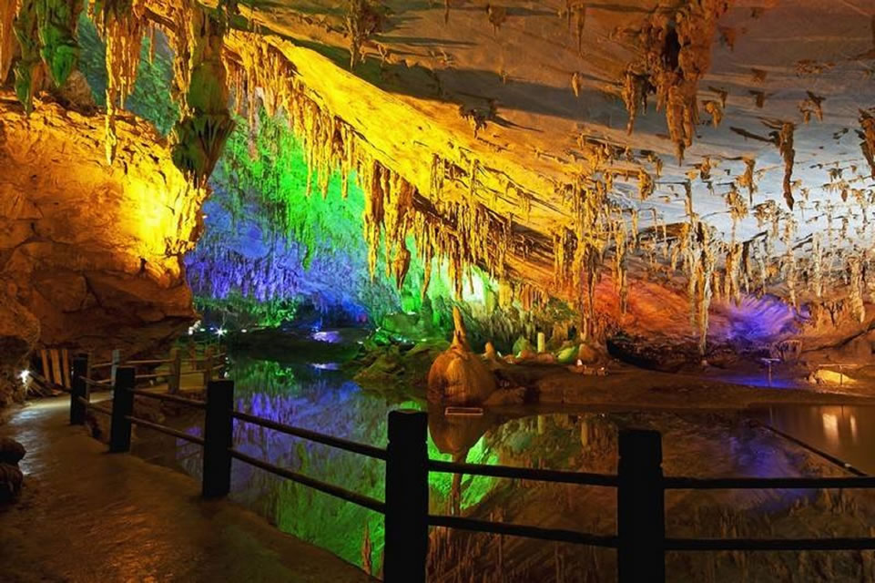 • 特色:中英聯(lián)合洞穴考察隊(duì)探測(cè)發(fā)現(xiàn),以棕櫚狀石筍、天河倒影、金倫石林等景觀(guān)聞名,常年恒溫20℃,適合四季游覽。