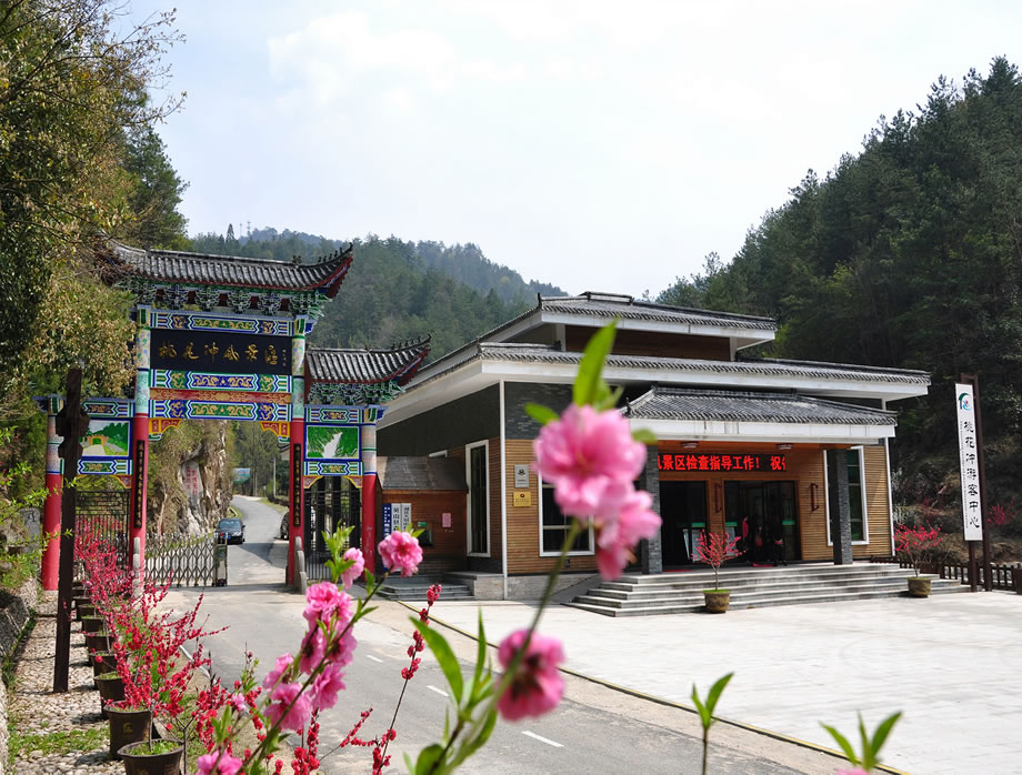 桃花沖旅游風(fēng)景區(qū)位于湖北省黃岡市英山縣東北角,東連桂枝山自然生態(tài)村、西望吳家山森林公園、北接安徽鷂落坪國(guó)家級(jí)自然保護(hù)區(qū),距武漢、合肥均為210公里。景區(qū)森林覆蓋率達(dá)98%,負(fù)氧離子含量達(dá)20000個(gè)/立方厘米,素有“天然氧吧”之稱(chēng),境內(nèi)分布1100余種維管束植物,盛產(chǎn)100多種名貴藥材,被譽(yù)為大別山"第一藥材寶庫(kù)" 。景區(qū)以十里桃花溪為核心景觀,包含黑龍?zhí)丁⒚汉、九龍瀑、桃花瀑等瀑布群和仙女潭等水體景觀,設(shè)有紅二十八軍紀(jì)念館、黃岡桃花沖滑雪世界等特色景點(diǎn),F(xiàn)存古楚長(zhǎng)城遺址及小岐嶺等革命遺跡,兼具自然風(fēng)光與紅色文化價(jià)值。度假區(qū)配備映月樓、聽(tīng)松樓等住宿設(shè)施,客房采用實(shí)木家具裝修,鄰近紅花水庫(kù)、占河水庫(kù)等水域景觀。建有鄂東規(guī)模最大的高山滑雪場(chǎng)及避暑設(shè)施,形成集觀光、滑雪、療養(yǎng)、科普教育、綠色會(huì)議接待為一體的綜合型旅游區(qū)。