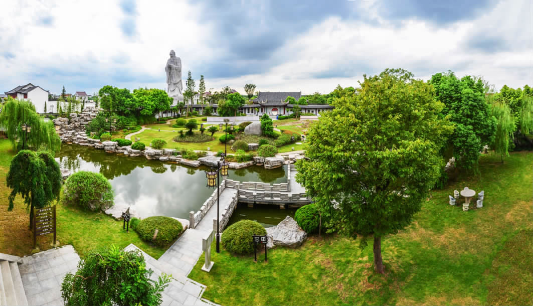 忠孝文化園位于江蘇省南通市通州區(qū)東社鎮(zhèn)鎮(zhèn)區(qū)北側(cè)500米,占地面積160畝,總投資3.2億元,分四期工程建設,由同濟大學設計為具有明末清初風格的江南園林式建筑。該園以陸鳳彬?qū)④娮嬲瑸榛A建造,2008年11月竣工開園,是國內(nèi)首個以"忠孝"為主題的人文景觀。園區(qū)主體建筑包含思苑樓、忠孝坊、中華柱、忠孝文化長廊及六角忠孝亭,陳列24忠24孝故事石刻、《孝經(jīng)》石刻長卷和唐至近現(xiàn)代硯臺50余方。園內(nèi)矗立國內(nèi)最高孔子石雕像,通高32米,由480余塊石質(zhì)部件拼接而成,重約千噸,以唐代吳道子畫像為藍本雕刻。聚寶閣收藏四大偉人紅木雕像、百名將軍墨寶及趙樸初等書法家作品。該園免費對外開放,設有愛國主義教育展廳、國防教育展區(qū)及多功能影視廳,年均舉辦道德講堂、主題展演等教育活動百余場。配套服務設施包含水上餐廳、垂釣中心及可容納300人的宴會廳。