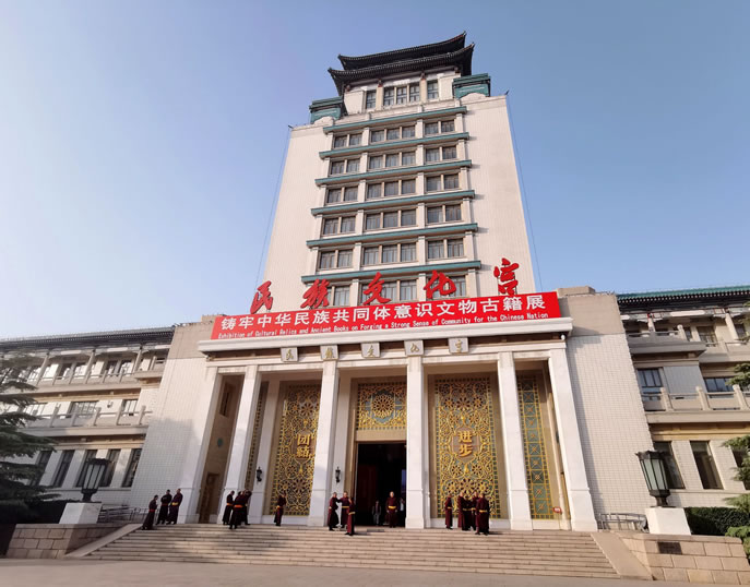 - 地址:北京市西城區(qū)復(fù)興門內(nèi)大街49號,西長安街西側(cè),20世紀(jì)50年代北京十大建筑之一,被譽為“民族典籍之宮”“民族之家”。