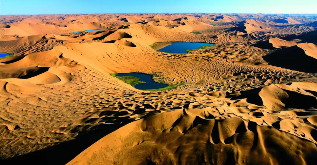 面積約4.43萬平方千米,是中國(guó)第三大沙漠。流動(dòng)沙丘占全部沙漠面積的83%。中部有高大沙山,一般高200-300m,最高的達(dá)500m。高大沙山間的低地有144個(gè)內(nèi)陸小湖。巴丹吉林沙漠有“中國(guó)最美的沙漠”的美稱。是阿拉善世界沙漠地質(zhì)公園的核心區(qū)域。