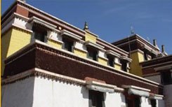 現(xiàn)存六大經(jīng)堂為蘇古沁殿、洞科爾殿、卻伊日殿(顯教經(jīng)堂)、當(dāng)圪希德殿、阿會殿(密宗經(jīng)堂)、日木倫殿(菩提道學(xué)經(jīng)堂)等。蘇古沁殿為全寺集會誦經(jīng)之所。這些殿宇規(guī)模宏大,均為典型的藏式建筑群。殿內(nèi)塑像、壁畫、唐卡(卷軸佛畫)俱全,各殿各有特色,或立高達(dá)十米的釋迦牟尼銅像,或供高達(dá)九米的黃教始祖宗喀巴銅像,或護(hù)法金剛像,或供奉白度母和綠度母塑像等。三座活佛府邸在阿會殿的南面,其中洞科爾活佛府規(guī)模宏大,為第二世活佛熱西尼瑪于乾隆四十九年(公元1784年)所建。左右是接待多倫諾爾匯宗寺甘珠爾瓦呼圖克圖和章嘉國師而建造的兩座府邸。