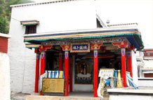 原名努尼殿,是供僧人靜坐休持的殿,用于喇嘛們以逐漸減少飲食,靜坐默誦,力圖不食不語的修行方式去解脫超度眾生靈。后來毀于文革動亂。2003年國家撥款在遺址上恢復(fù)并擴建此殿,2005年9月開始對外開放,全殿上下兩層,一樓為佛堂,供有千手千眼觀音像、六世班禪大師、宗喀巴大師像,正中供奉的三世佛為銅鑄鍍金佛像。墻上所繪壁畫是藏傳佛教九大佛寺壁畫。