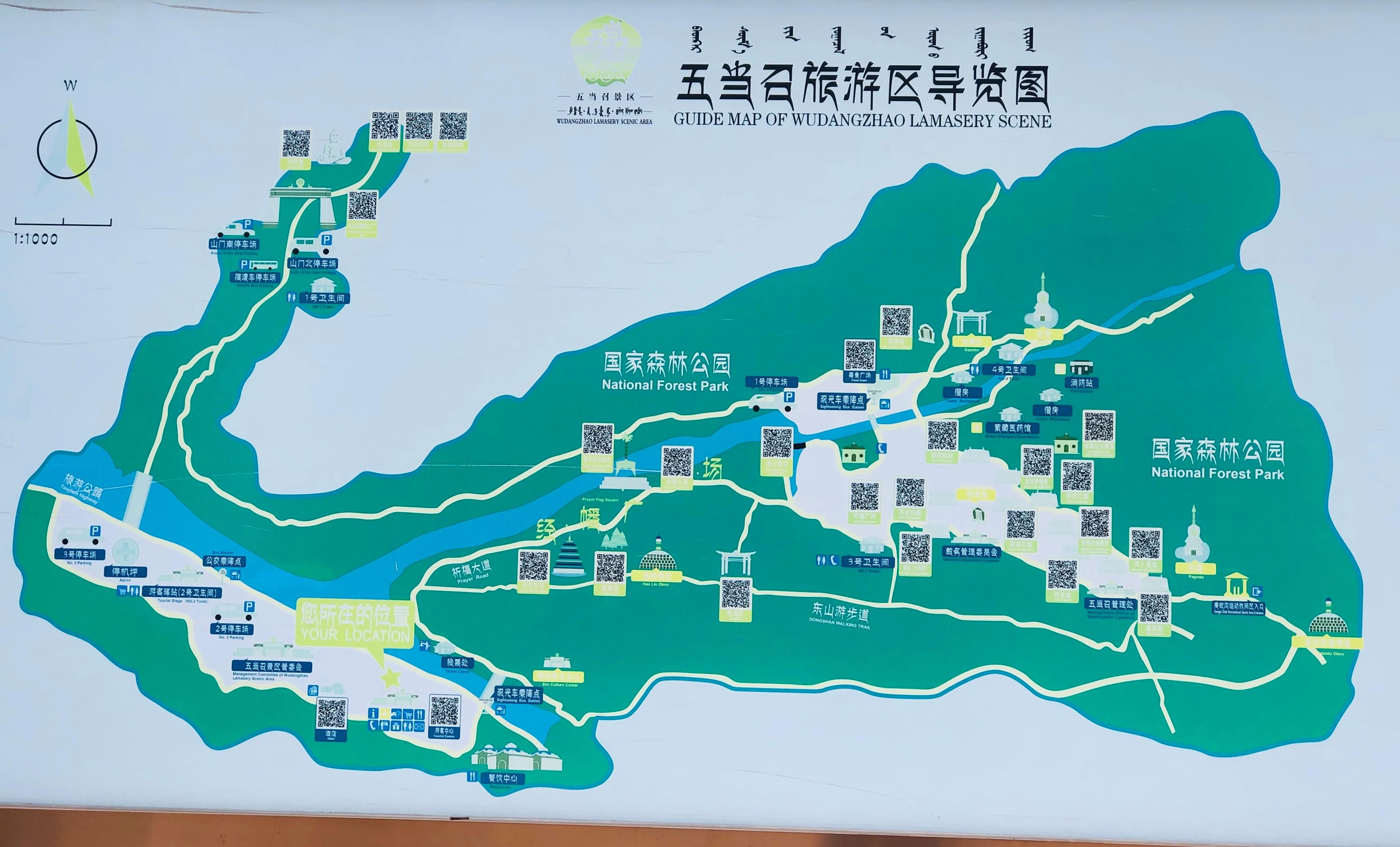 蘇古沁獨宮坐落全召的最前部,是舉行全體集會誦經(jīng)的場所。經(jīng)堂內(nèi)的立柱全用龍紋的栽絨毛毯包裹,地上滿鋪地毯,墻壁繪有彩色壁畫,后廳及二、三層內(nèi)供奉釋迦牟尼、宗喀巴及歷代佛師。在蘇古沁獨宮西面與其并列的卻人林獨宮,是講授佛教教義的地方,殿內(nèi)的十米高釋迦牟尼銅像是全召最大的銅鑄佛像。高踞這兩宮之上的,是洞闊爾獨宮,是講授天文、地理的場所,門楣上懸掛著用漢、滿、蒙、藏四種文字書寫的“廣覺寺”匾額,宮前有講經(jīng)臺,是喇嘛學(xué)經(jīng)和口試之處。阿會獨宮位于山坡最高處,是傳授醫(yī)學(xué)的學(xué)部。日木倫獨宮為教義學(xué)部,專門傳授喇嘛歷史、教義、教規(guī)。