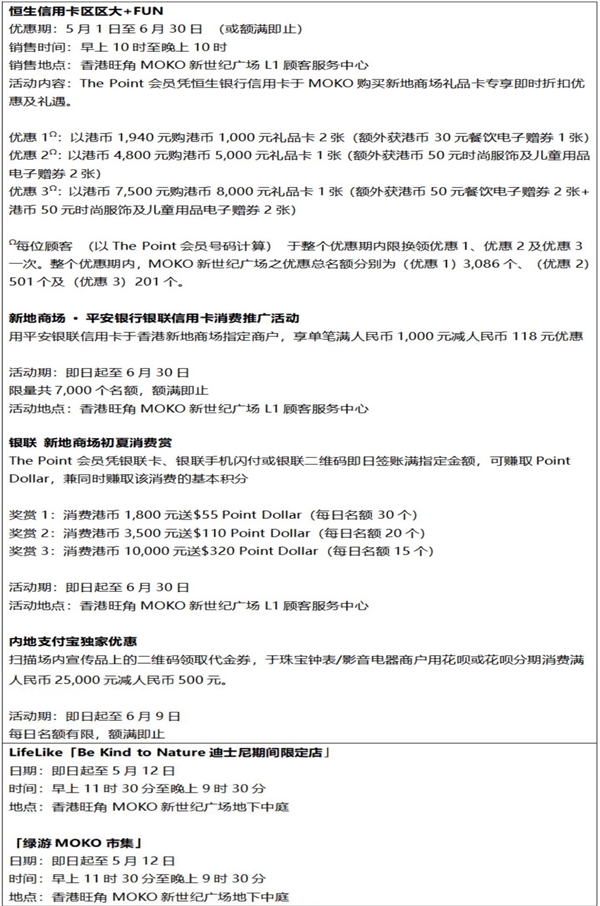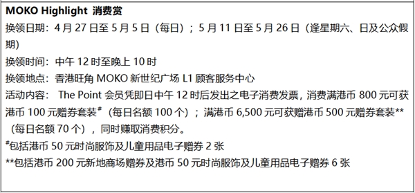 有關香港旺角MOKO新世紀廣場五一推廣活動詳情