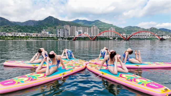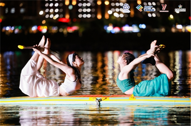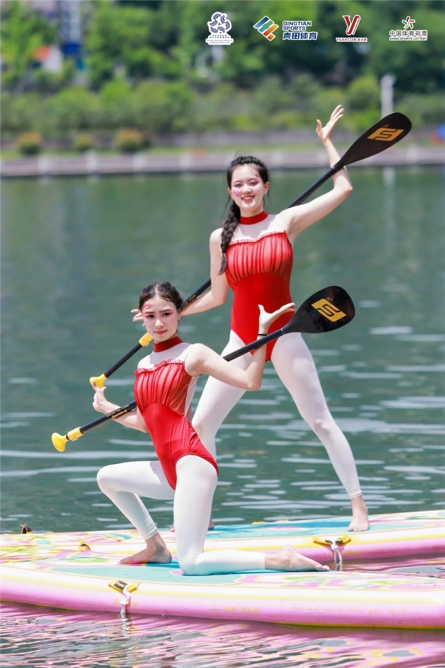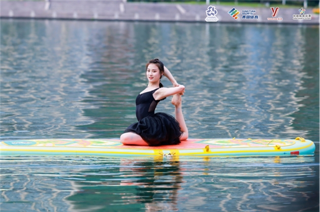 前屈、后彎、扭轉(zhuǎn)、平衡、倒置……音樂與動作和諧統(tǒng)一,身體與槳板融為一體。參賽隊員們展示的不僅是控制身體的力量,更是人與自然、美與健康的完美結(jié)合,圍觀群眾不時給予陣陣掌聲。