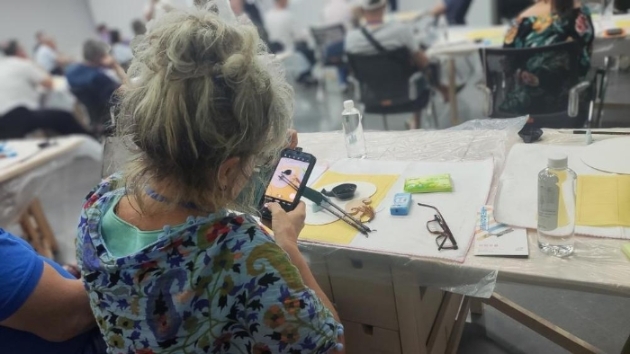 在上海市群眾藝術(shù)館,近60名波蘭團隊游客跟隨書法指導(dǎo)老師了解中國“文房四寶”的制作方法,學(xué)習(xí)用毛筆書寫漢字,還參觀了最新攝影展及非遺市集,了解上海各級文化館服務(wù)內(nèi)容、工作職責(zé)。