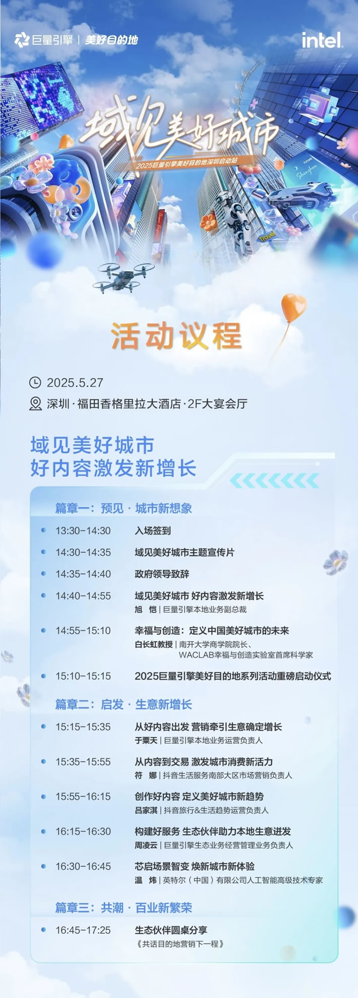 5月27日,關(guān)注2025巨量引擎美好目的地深圳啟動站,一起吹爆美好目的地,激發(fā)文旅生意新可能!