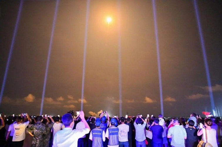 “5,4,3,2,1”——火箭的火焰照亮夜幕,平臺的光束射向天際……19時50分,火箭發(fā)射升空,游客們舉著手機(jī)記錄,現(xiàn)場歡呼聲陣陣。“很興奮、很震撼,感覺一伸手就能‘抓’到火箭。”延鈺菲說。