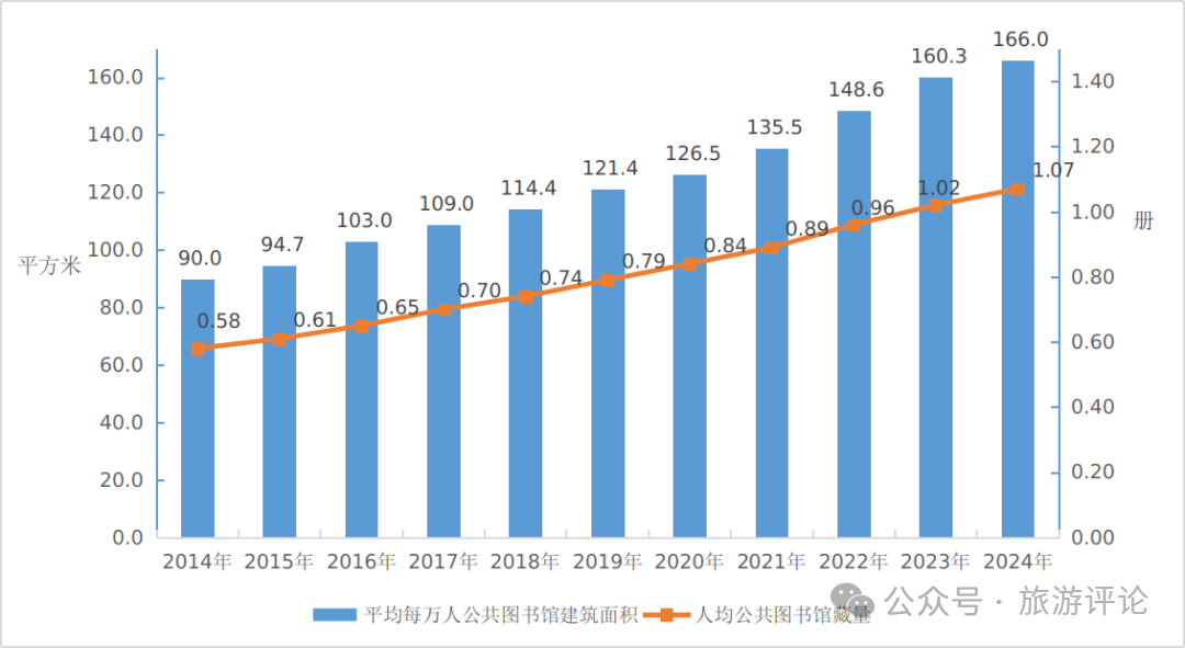 2024年末,全國平均每萬人公共圖書館建筑面積166平方米,比上年末增加5.7平方米;全國人均圖書藏量1.07冊,比上年末增加0.05冊;全年全國人均購書費1.5元,與上年基本持平!